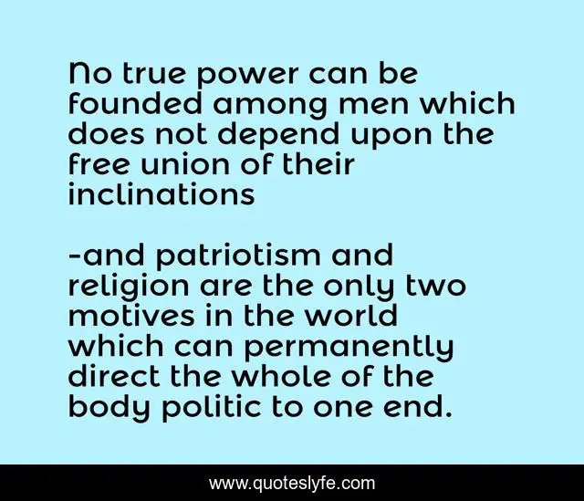 "and patriotism and religion are the only two motives in the world which can permanently direct the whole of the body politic to one end. Quotes." Quoteslyfe.com, 2025. Sat. 06 Dec. 2025. <https://www.quoteslyfe.com/quote/No-true-power-can-be-founded-among-48141>.
