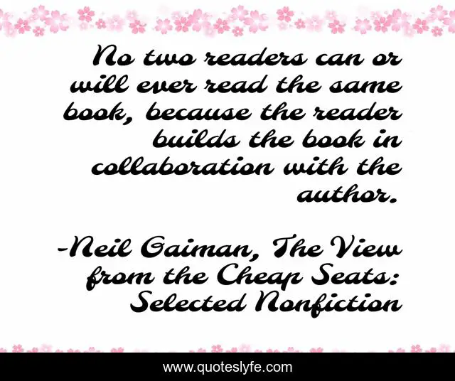 "Neil Gaiman, The View from the Cheap Seats: Selected Nonfiction Quotes." Quoteslyfe.com, 2025. Fri. 05 Dec. 2025. <https://www.quoteslyfe.com/quote/No-two-readers-can-or-will-ever-43488>.