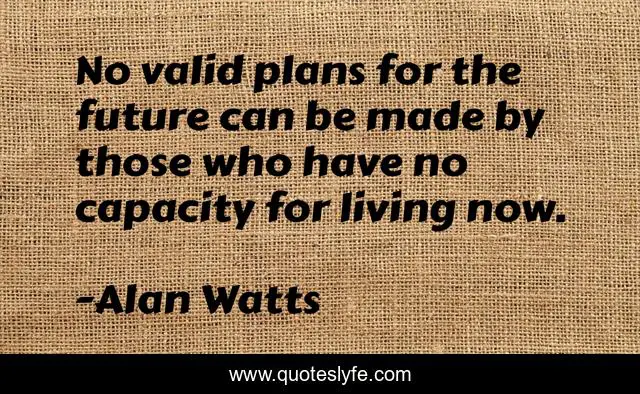 This page presents the quote "No valid plans for the future can be made by those who have no capacity for living now.". Author of this quote is Alan Watts. This quote is about living, now, plans,.