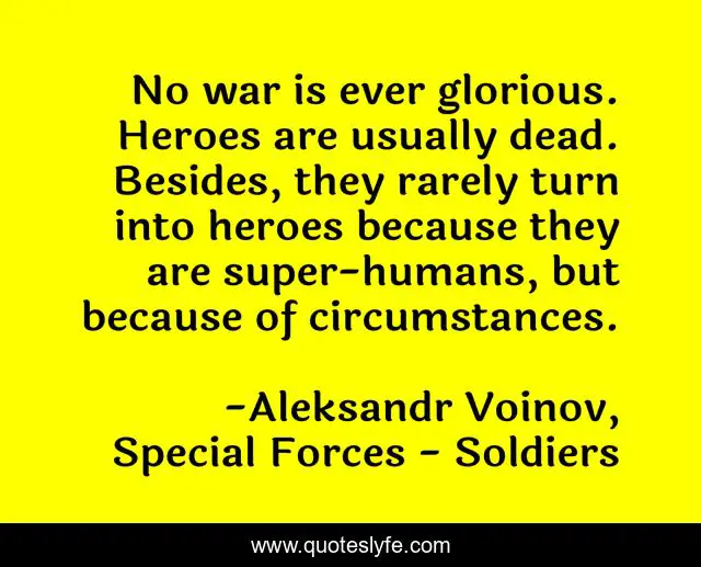 "Aleksandr Voinov, Special Forces - Soldiers Quotes." Quoteslyfe.com, 2025. Mon. 08 Dec. 2025. <https://www.quoteslyfe.com/quote/No-war-is-ever-glorious-Heroes-are-250579>.