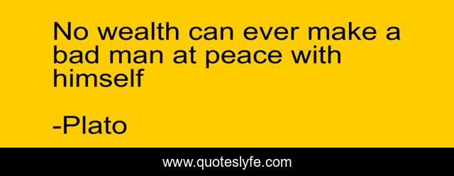 This page presents the quote "No wealth can ever make a bad man at peace with himself". Author of this quote is Plato. This quote is about contentment, music, wealth,.