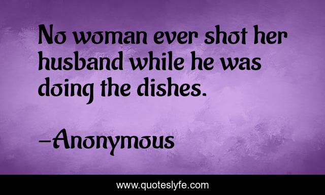 This page presents the quote "No woman ever shot her husband while he was doing the dishes.". Author of this quote is Anonymous. This quote is about love, marriage, affection,.