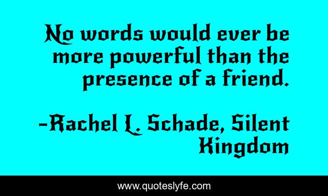 "Rachel L. Schade, Silent Kingdom Quotes." Quoteslyfe.com, 2025. Sat. 06 Dec. 2025. <https://www.quoteslyfe.com/quote/No-words-would-ever-be-more-powerful-112883>.