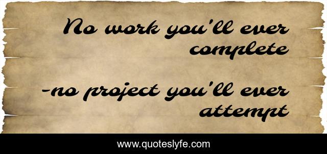 This page presents the quote "No work you'll ever complete". Author of this quote is no project you'll ever attempt. .