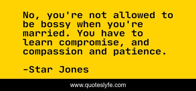 This page presents the quote "No, you're not allowed to be bossy when you're married. You have to learn compromise, and compassion and patience.". Author of this quote is Star Jones. This quote is about compassion, compromise,.