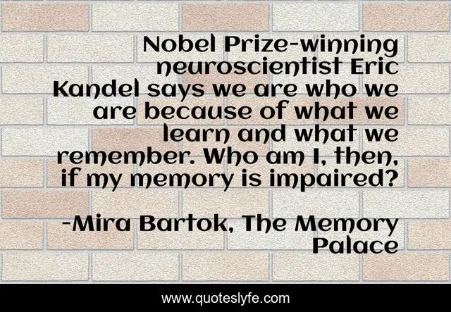 "Mira Bartok, The Memory Palace Quotes." Quoteslyfe.com, 2025. Mon. 08 Dec. 2025. <https://www.quoteslyfe.com/quote/Nobel-Prize-winning-neuroscientist-Eric-Kandel-says-133260>.