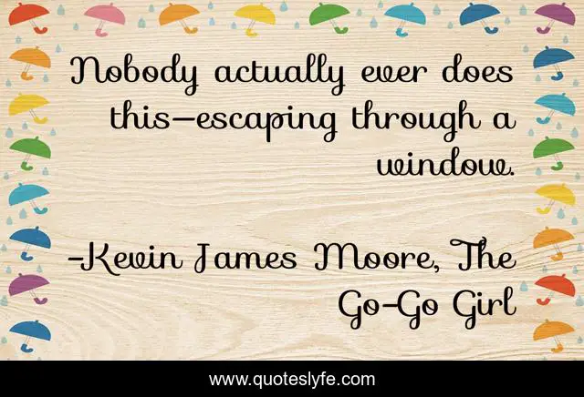 This page presents the quote "Nobody actually ever does this—escaping through a window.". Author of this quote is Kevin James Moore, The Go-Go Girl. This quote is about humor, escape,.