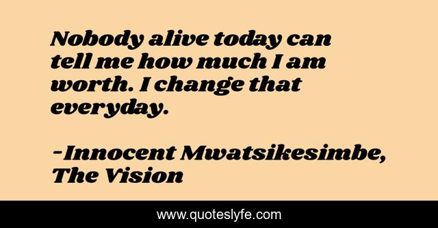 This page presents the quote "Nobody alive today can tell me how much I am worth. I change that everyday.". Author of this quote is Innocent Mwatsikesimbe, The Vision. This quote is about enthusiasm, self-improvement, inspirational, self-worth,.