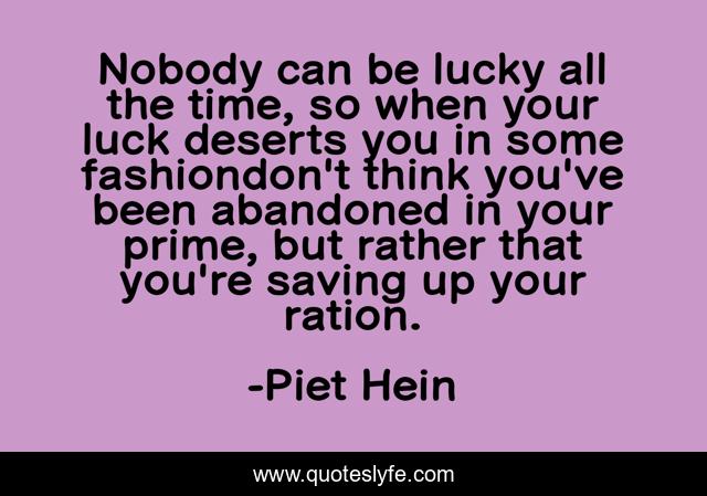This page presents the quote "Nobody can be lucky all the time, so when your luck deserts you in some fashiondon't think you've been abandoned in your prime, but rather that you're saving up your ration.". Author of this quote is Piet Hein. .