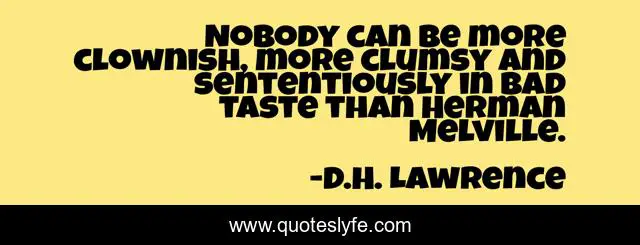 This page presents the quote "Nobody can be more clownish, more clumsy and sententiously in bad taste than Herman Melville.". Author of this quote is D.H. Lawrence. This quote is about authors, insults,.