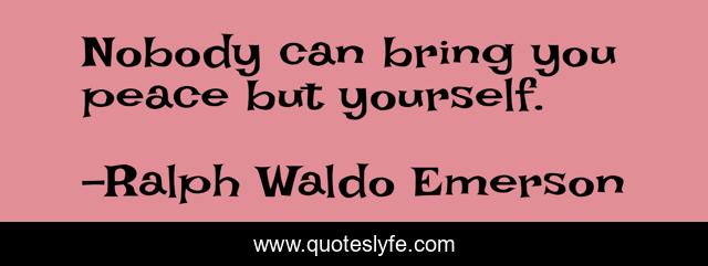 This page presents the quote "Nobody can bring you peace but yourself.". Author of this quote is Ralph Waldo Emerson. This quote is about bring, yourself,.