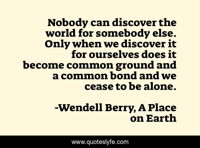 "Wendell Berry, A Place on Earth Quotes." Quoteslyfe.com, 2025. Mon. 08 Dec. 2025. <https://www.quoteslyfe.com/quote/Nobody-can-discover-the-world-for-somebody-91174>.