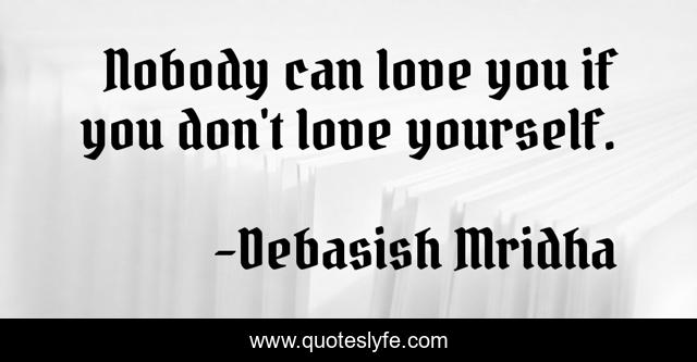 This page presents the quote "Nobody can love you if you don't love yourself.". Author of this quote is Debasish Mridha. This quote is about life, love, knowledge, inspirational, intelligence, philosophy, wisdom, quotes, affection,.