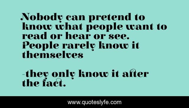 This page presents the quote "Nobody can pretend to know what people want to read or hear or see. People rarely know it themselves". Author of this quote is they only know it after the fact.. This quote is about one hundred names, cecelia ahern,.