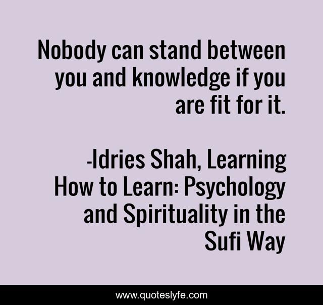 "Idries Shah, Learning How to Learn: Psychology and Spirituality in the Sufi Way Quotes." Quoteslyfe.com, 2025. Fri. 05 Dec. 2025. <https://www.quoteslyfe.com/quote/Nobody-can-stand-between-you-and-knowledge-203488>.