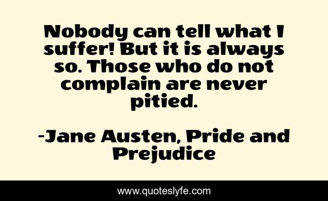 "Jane Austen, Pride and Prejudice Quotes." Quoteslyfe.com, 2025. Sat. 06 Dec. 2025. <https://www.quoteslyfe.com/quote/Nobody-can-tell-what-I-suffer-But-143503>.