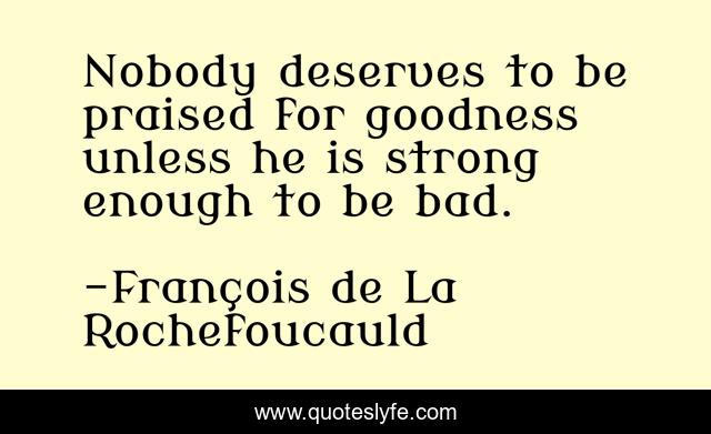 This page presents the quote "Nobody deserves to be praised for goodness unless he is strong enough to be bad.". Author of this quote is François de La Rochefoucauld. .