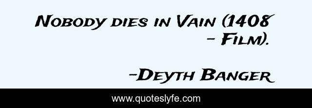 This page presents the quote "Nobody dies in Vain (1408 - Film).". Author of this quote is Deyth Banger. This quote is about dies, vain, film,.