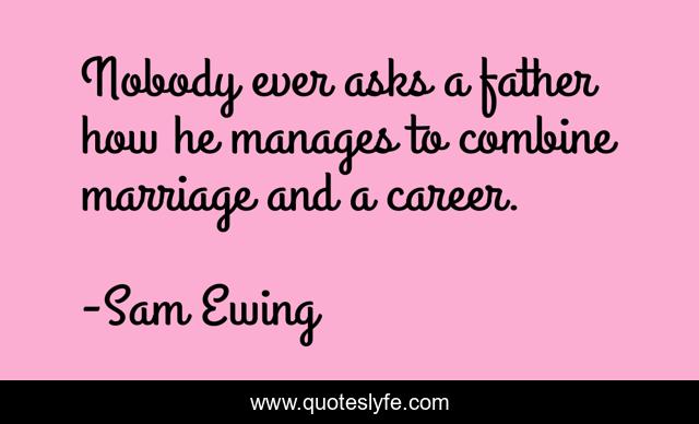 This page presents the quote "Nobody ever asks a father how he manages to combine marriage and a career.". Author of this quote is Sam Ewing. This quote is about career, nobody, father,.
