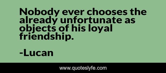 This page presents the quote "Nobody ever chooses the already unfortunate as objects of his loyal friendship.". Author of this quote is Lucan. This quote is about loyal, nobody, objects,.