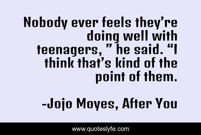 This page presents the quote "Nobody ever feels they’re doing well with teenagers, ” he said. “I think that’s kind of the point of them.". Author of this quote is Jojo Moyes, After You. .