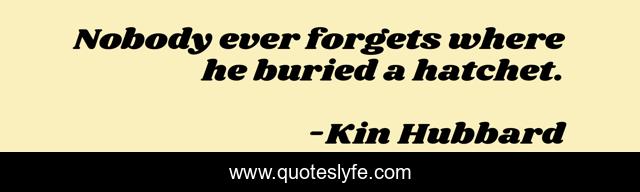 This page presents the quote "Nobody ever forgets where he buried a hatchet.". Author of this quote is Kin Hubbard. .
