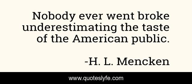 "H. L. Mencken Quotes." Quoteslyfe.com, 2025. Mon. 08 Dec. 2025. <https://www.quoteslyfe.com/quote/Nobody-ever-went-broke-underestimating-the-taste-260105>.