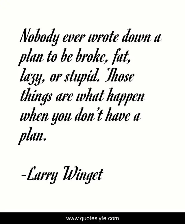 This page presents the quote "Nobody ever wrote down a plan to be broke, fat, lazy, or stupid. Those things are what happen when you don’t have a plan.". Author of this quote is Larry Winget. .
