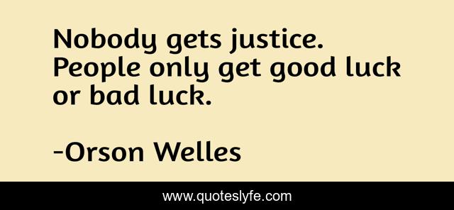 This page presents the quote "Nobody gets justice. People only get good luck or bad luck.". Author of this quote is Orson Welles. This quote is about justice, luck, good luck,.