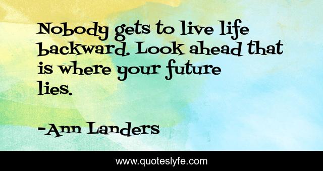 This page presents the quote "Nobody gets to live life backward. Look ahead that is where your future lies.". Author of this quote is Ann Landers. .