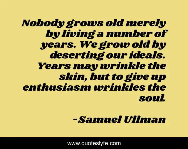 Nobody grows old merely by living a number of years. We grow old by deserting our ideals. Years may wrinkle the skin, but to give up enthusiasm wrinkles the soul.