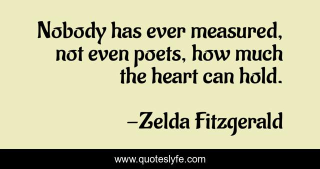 This page presents the quote "Nobody has ever measured, not even poets, how much the heart can hold.". Author of this quote is Zelda Fitzgerald. This quote is about love, affection,.