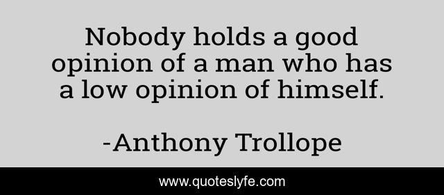 This page presents the quote "Nobody holds a good opinion of a man who has a low opinion of himself.". Author of this quote is Anthony Trollope. This quote is about self, acceptance,.