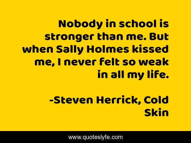 This page presents the quote "Nobody in school is stronger than me. But when Sally Holmes kissed me, I never felt so weak in all my life.". Author of this quote is Steven Herrick, Cold Skin. This quote is about stronger, never-felt-so-weak, weak, kissed-me, school,.
