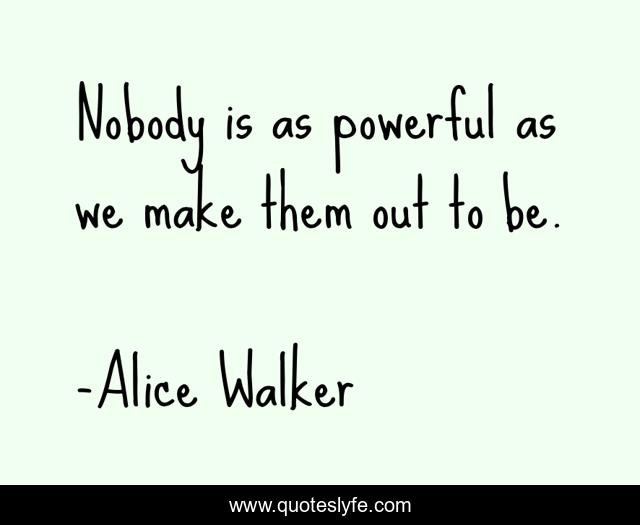 This page presents the quote "Nobody is as powerful as we make them out to be.". Author of this quote is Alice Walker. This quote is about nobody, powerful, out,.