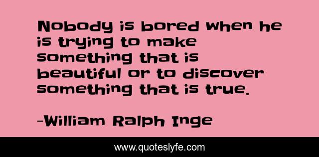 This page presents the quote "Nobody is bored when he is trying to make something that is beautiful or to discover something that is true.". Author of this quote is William Ralph Inge. This quote is about boring, days,.