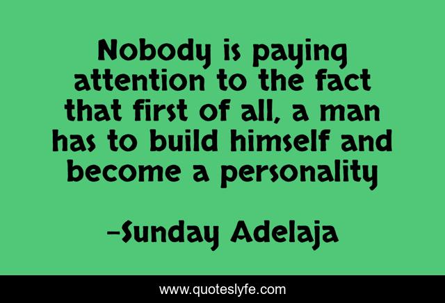 This page presents the quote "Nobody is paying attention to the fact that first of all, a man has to build himself and become a personality". Author of this quote is Sunday Adelaja. This quote is about people, attention, self-development, man, fact, personality,.
