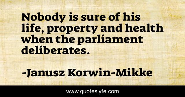This page presents the quote "Nobody is sure of his life, property and health when the parliament deliberates.". Author of this quote is Janusz Korwin-Mikke. This quote is about politics, life, property, health, parliament,.