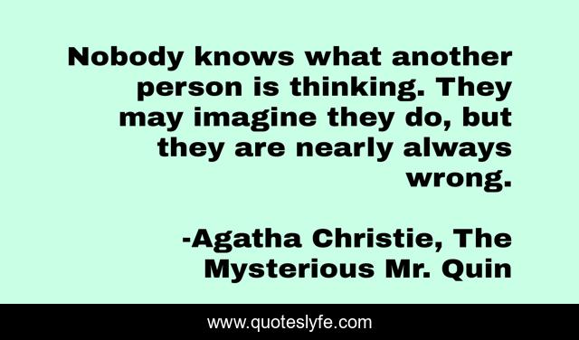 "Agatha Christie, The Mysterious Mr. Quin Quotes." Quoteslyfe.com, 2025. Sun. 07 Dec. 2025. <https://www.quoteslyfe.com/quote/Nobody-knows-what-another-person-is-thinking-125986>.