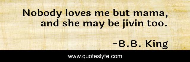 This page presents the quote "Nobody loves me but mama, and she may be jivin too.". Author of this quote is B.B. King. This quote is about humor, music,.
