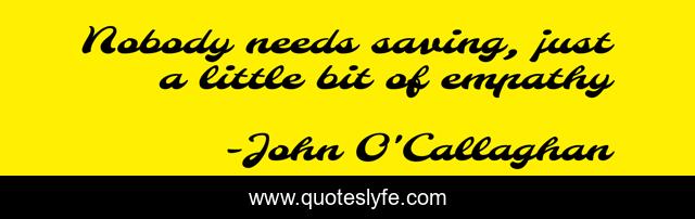 This page presents the quote "Nobody needs saving, just a little bit of empathy". Author of this quote is John O'Callaghan. This quote is about the-maine, existentialism, sincerely-john-the-ghost, musician, inspirational, john-o-callaghan, poet, enthusiasm,.