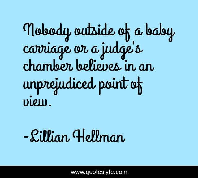This page presents the quote "Nobody outside of a baby carriage or a judge's chamber believes in an unprejudiced point of view.". Author of this quote is Lillian Hellman. This quote is about prejudice, point-of-view,.