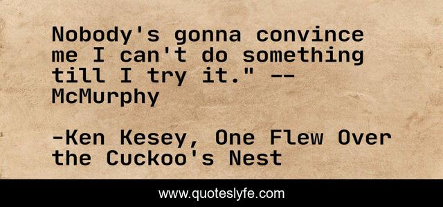 "Ken Kesey, One Flew Over the Cuckoo's Nest Quotes." Quoteslyfe.com, 2025. Sat. 06 Dec. 2025. <https://www.quoteslyfe.com/quote/Nobody-s-gonna-convince-me-I-can-188134>.