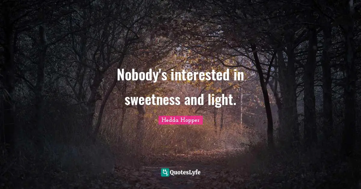"Hedda Hopper Quotes." Quoteslyfe.com, 2026. Fri. 02 Jan. 2026. <https://www.quoteslyfe.com/quote/Nobody-s-interested-in-sweetness-and-light-640959>.