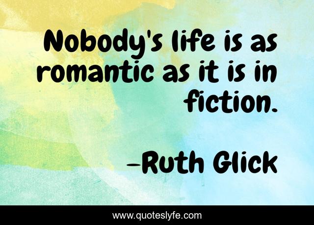 This page presents the quote "Nobody's life is as romantic as it is in fiction.". Author of this quote is Ruth Glick. This quote is about life, nobody, fiction,.