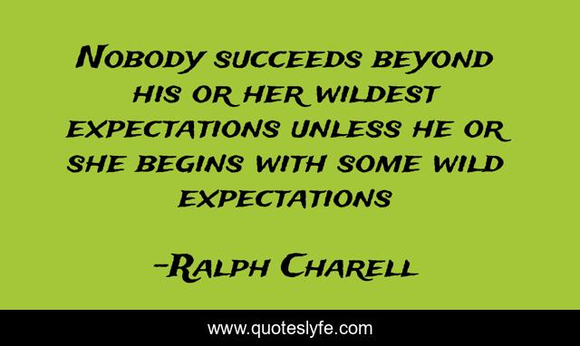 This page presents the quote "Nobody succeeds beyond his or her wildest expectations unless he or she begins with some wild expectations". Author of this quote is Ralph Charell. .