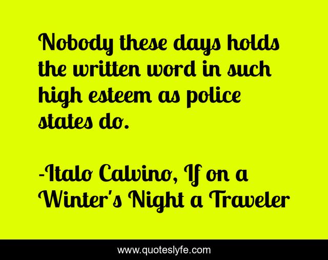 This page presents the quote "Nobody these days holds the written word in such high esteem as police states do.". Author of this quote is Italo Calvino, If on a Winter's Night a Traveler. This quote is about irony, literature,.