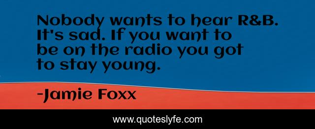 This page presents the quote "Nobody wants to hear R&B. It's sad. If you want to be on the radio you got to stay young.". Author of this quote is Jamie Foxx. .