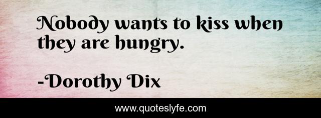 This page presents the quote "Nobody wants to kiss when they are hungry.". Author of this quote is Dorothy Dix. This quote is about kiss, love, hungry, affection,.