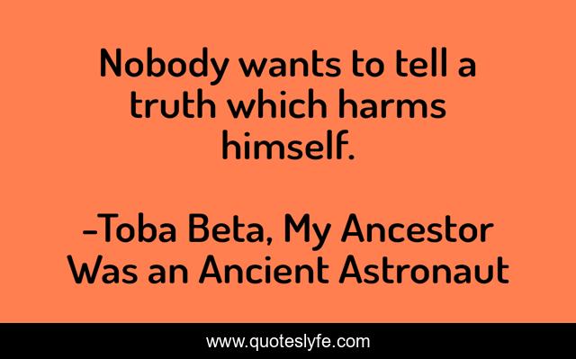 "Toba Beta, My Ancestor Was an Ancient Astronaut Quotes." Quoteslyfe.com, 2025. Sat. 06 Dec. 2025. <https://www.quoteslyfe.com/quote/Nobody-wants-to-tell-a-truth-which-9866>.